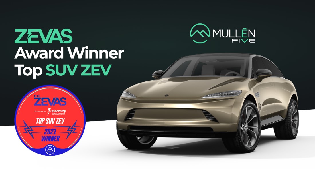 Mullen FIVE EV Crossover Debuts to the World and Wins ‘Top SUV’ Title at the 2021 LA Auto Show’s ZEVAS™ Awards