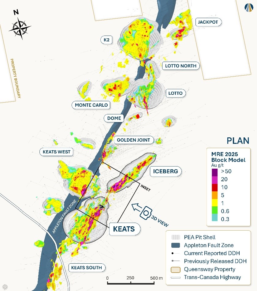 Melissa Render, President of New Found Gold stated: "We are excited to share these first results from grade control drilling at the Keats excavation, which continue to define the high-grade tenor of the near-surface portion of this zone. These results provide detailed data to further validate our resource models, specifically with respect to grade top cutting and influence limiting of high-grade intersections in advance of a MRE update and further mine planning. We look forward to updating the market with further results from grade control drilling at both Keats and Iceberg."