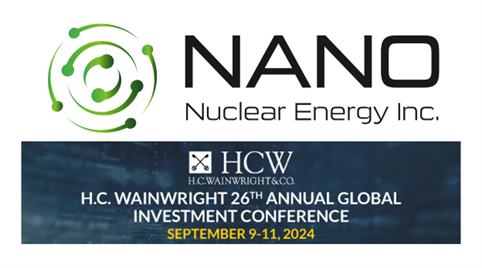 NANO Nuclear Energy to Present and Participate in H.C. Wainwright & Co.’s 26th Annual Global Investment Conference in New York on September 9-11th, 2024