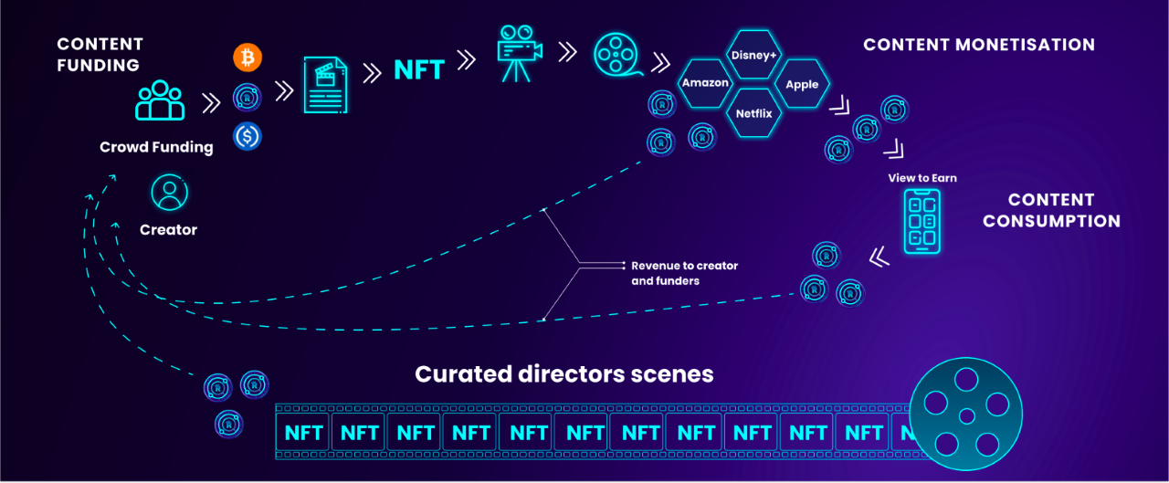 The Ritestream ECOsystem introduces the concept of decentralization in filmmaking by tapping into the power of Distributed Ledger Technology (DLT) to empower creators with open networks to boost the free flow of creativity. There are three layers to how the Ritestream ECOsystem works: Launchpad, Marketplace, and Consumer App. Additionally, data from the “View to Earn” mechanism on the Ritestream consumer app will notify the creators about what viewers like or don't like and also generate additional revenues through potential advertisers.