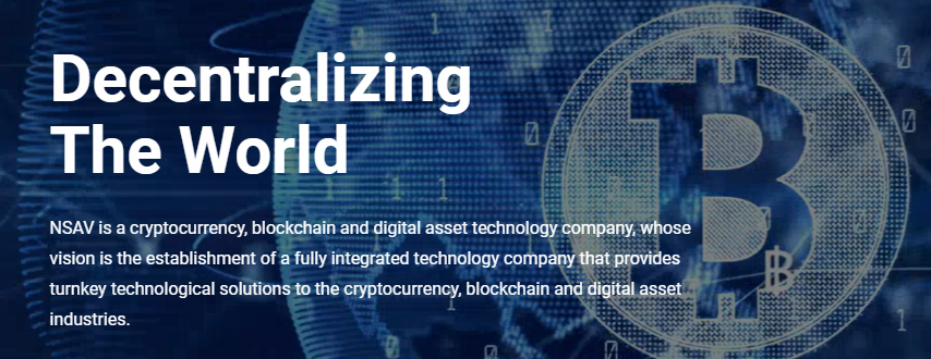 NSAV's vision is the establishment of a fully integrated technology company, which provides turnkey technological solutions to the cryptocurrency, blockchain and digital asset industries. Over time, the Company plans to provide a wide range of services such as software solutions, e-commerce, financial services, advisory services and information technology.