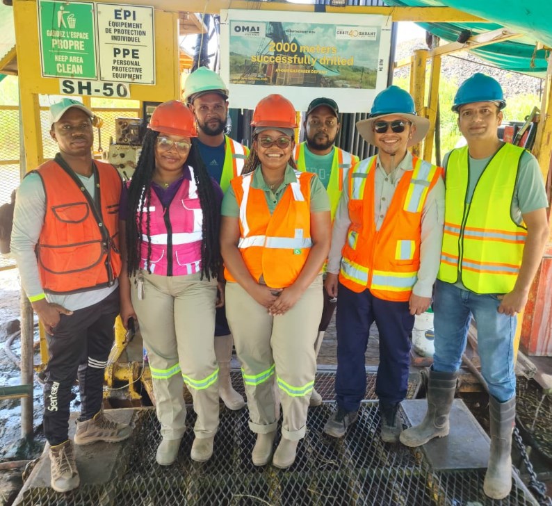 Photo 1. Team Omai celebrated the success reaching the targeted 2,000m mark on deep hole 122. We extend thanks to our great drillers from Orbit Garant.