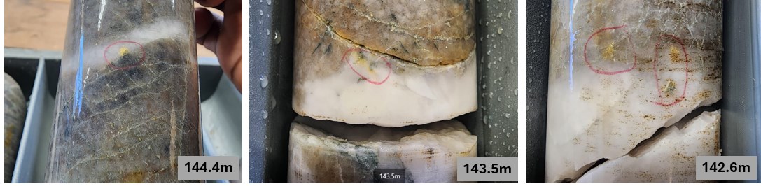 Photo 2. Visible Gold in Hole 25ODD-135 (Camp Zone)
