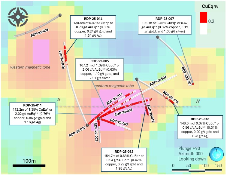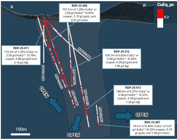 - 154.7 m intercept at 0.63% CuEq (RDP-25-012)
