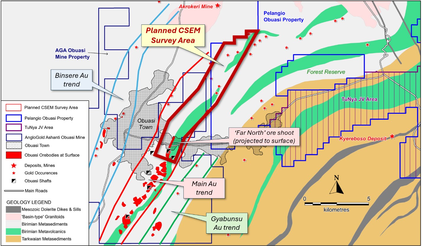 CSEM surveys will be conducted on Pelangio's Obuasi and Manfo projects to delineate targets up to 1+ kilometre depth below prospective exploration target areas.