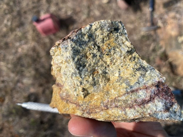 Figure 1: Sample of pyrite granodiorite with reddish oxidation color.