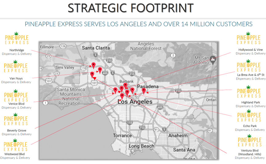 Management confirmed that these initial ten profit generating leases pictured below are the first of what the Company intends on replicating in other cannabis markets across the country. The leases are in the metro Los Angeles neighborhoods of: Hollywood, Northridge, Van Nuys, Mid-City Venice, Beverly Grove, Westwood, Mid-Wilshire, Woodland Hills, Highland Park, & Echo Park.