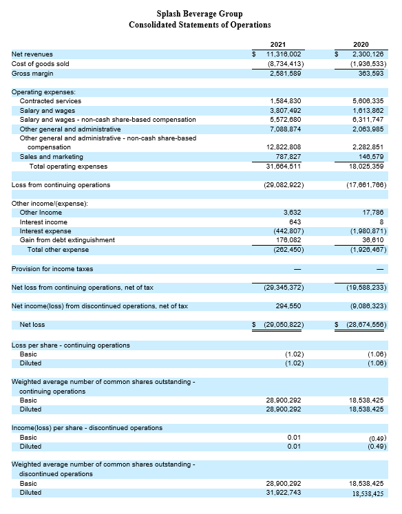 - Splash Beverage Group Reports 2021 Fourth Quarter and Full Year Financial Results