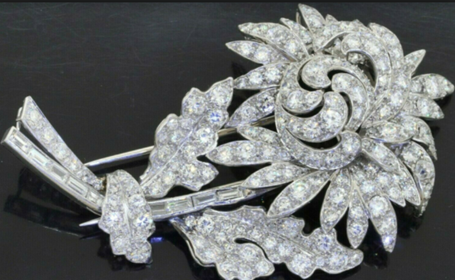 The May 19 auction was highlighted by the sale of an antique heavy platinum exquisite 16.0CTW VS diamond cluster large flower brooch for
