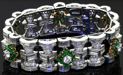 The March 17 “Famous Thursday Night Auction” event was highlighted by the sale of a Retro Heavy Ultra Fine Platinum 33ct Diamond & Emerald Bracelet 78.54 Grams for