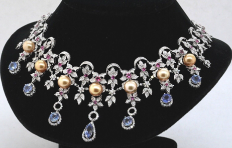 The June 2 auction was highlighted by the sale of a heavy 18K WG 28.64CT diamond sapphire tourmaline pearl formal necklace for