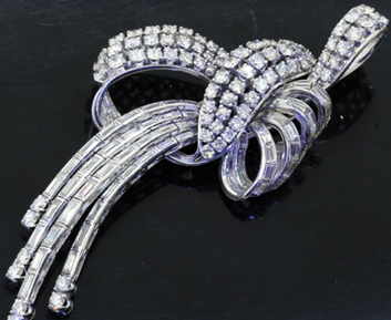 The auction was highlighted by the sale of a 1950's heavy Platinum 23.69CT VS/F diamond ribbon brooch, which brought in nearly