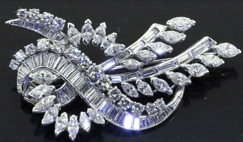 The March 24 “Famous Thursday Night Auction” event was highlighted by the sale of an exquisite Heavy Platinum 6.25CTW VS1/F diamond cluster floral ribbon brooch for nearly