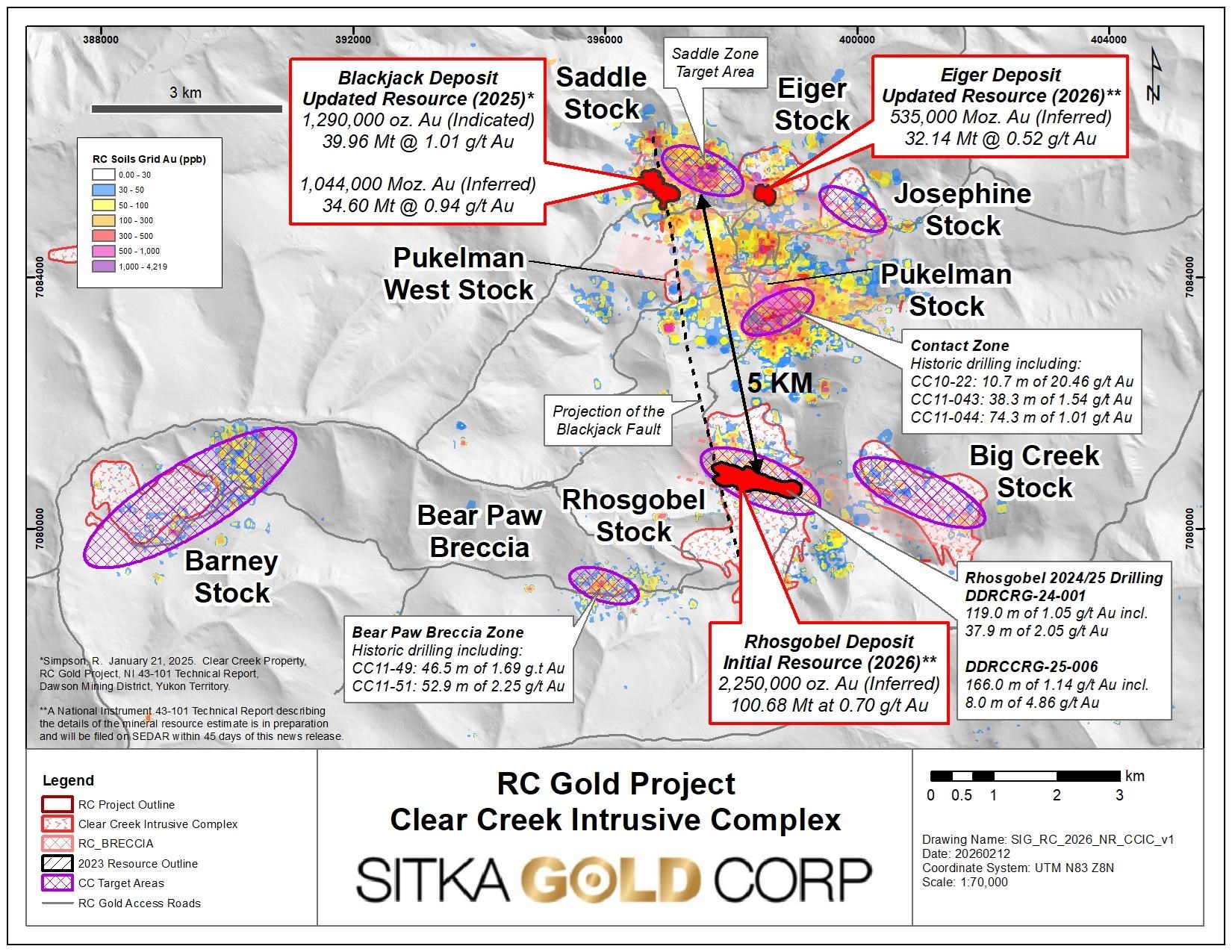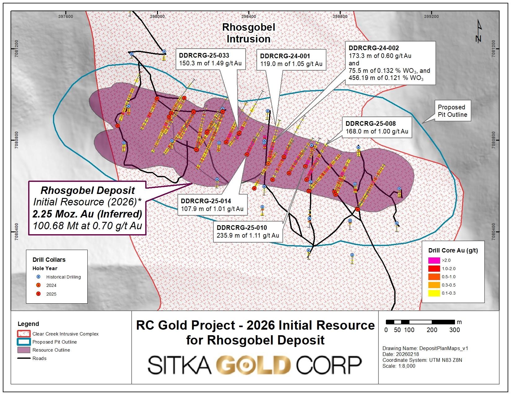 Vancouver, British Columbia--(Newsfile Corp. - February 25, 2026) - Sitka Gold Corp. (TSXV: SIG) (FSE: 1RF) (OTCQB: SITKF) ("Sitka" or the "Company") is pleased to announce an updated Mineral Resource Estimate ("MRE") in accordance with the Canadian Institute of Mining, Metallurgy and Petroleum ("CIM") Definition Standards incorporated by reference in National Instrument 43-101 ("NI 43-101") for the RC Gold Project ("RC Gold" or the "Project") located in the Yukon's prolific Tombstone Gold Belt. The MRE was prepared on behalf of the Company by GeoSim Services Inc. and is supported by additional drilling completed by the Company in 2025.