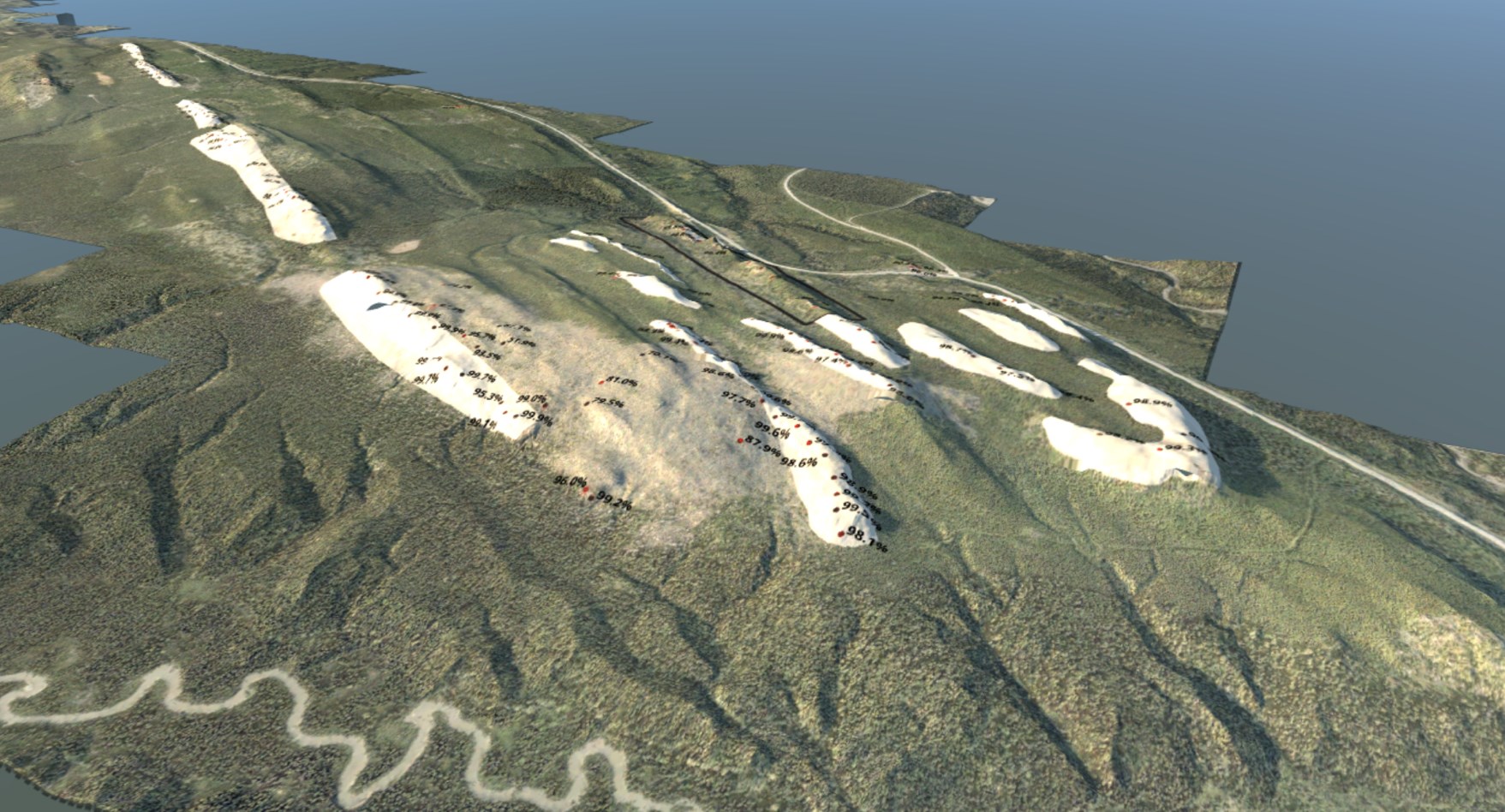 Screenshot of Ptarmigan 3D model showing the topographic highs of quartzite
