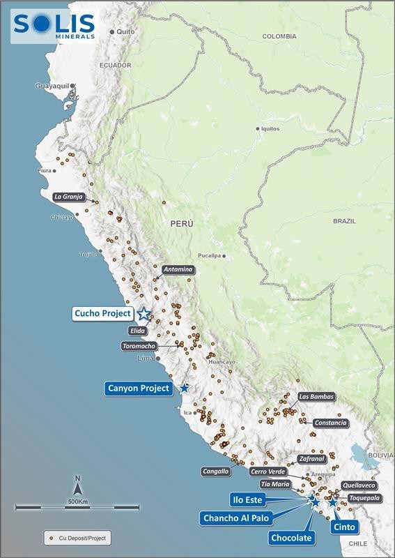 Figure 1: map of Peru and Solis Minerals' exploration portfolio.