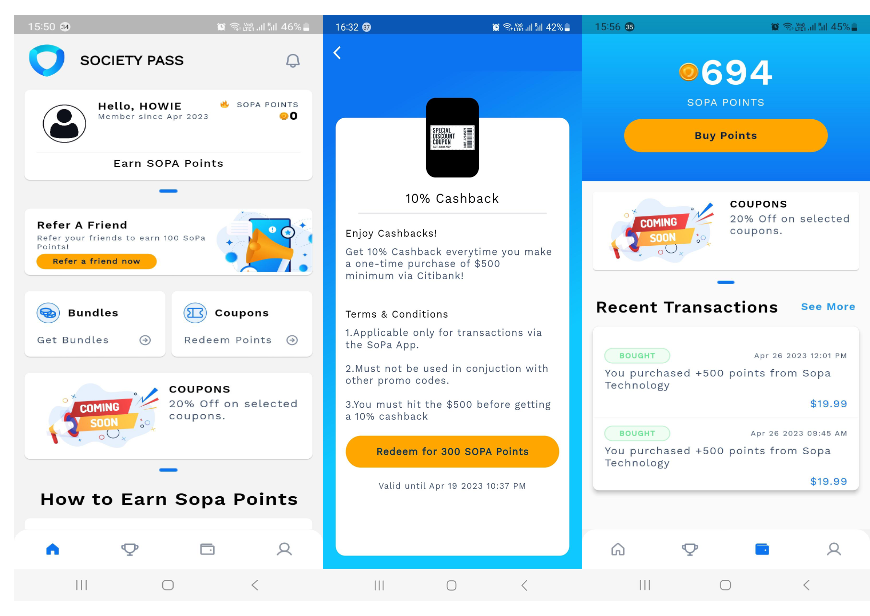Howie Ng, Chief Technology Officer of SoPa, explains, “We designed a best-in-class user interface backed by fully integrated backend infrastructure to kickstart a virtuous cycle of revenue generation and loyalty creation. SoPa Loyalty App offers a wide range of options: gamification, badges, tiers, birthday surprises, and early access privileges. Our smooth registration process allows consumers to redeem points for coupons, refer friends and earn SOPA points, view wallet balance, change your settings, purchase SOPA points, store multiple credit cards, and settle purchases in real-time.”