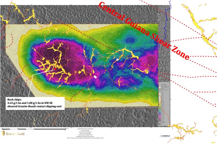 Auracle Geospatial Science Inc. ("Auracle") was contracted by Sranan to analyze the structural complexity of the Lawantino Property by means of its proprietary Mapped Underworld Dimension (MUD® SAR) remote-sensing system. Results from Auracle's analysis show a distinct increase in fracture density in association with abundant small-scale miners (see Figure 3). A similar increase in fracture density is observed on the east portion of the Lawantino Property.