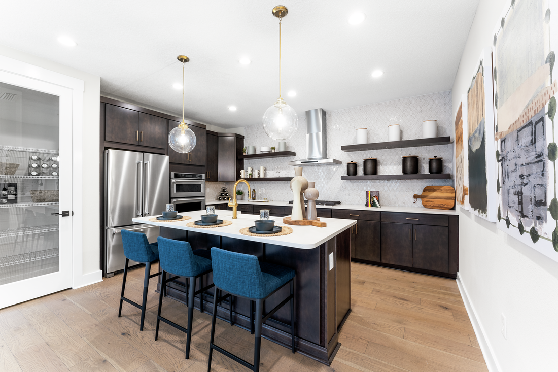 Edison East features all-new home designs with modern craftsman and modern farmhouse exterior architecture, as well as luxury interior appointments and personalization options, exquisite architectural details, spacious living areas, well-appointed kitchens, and private primary bedroom suites.