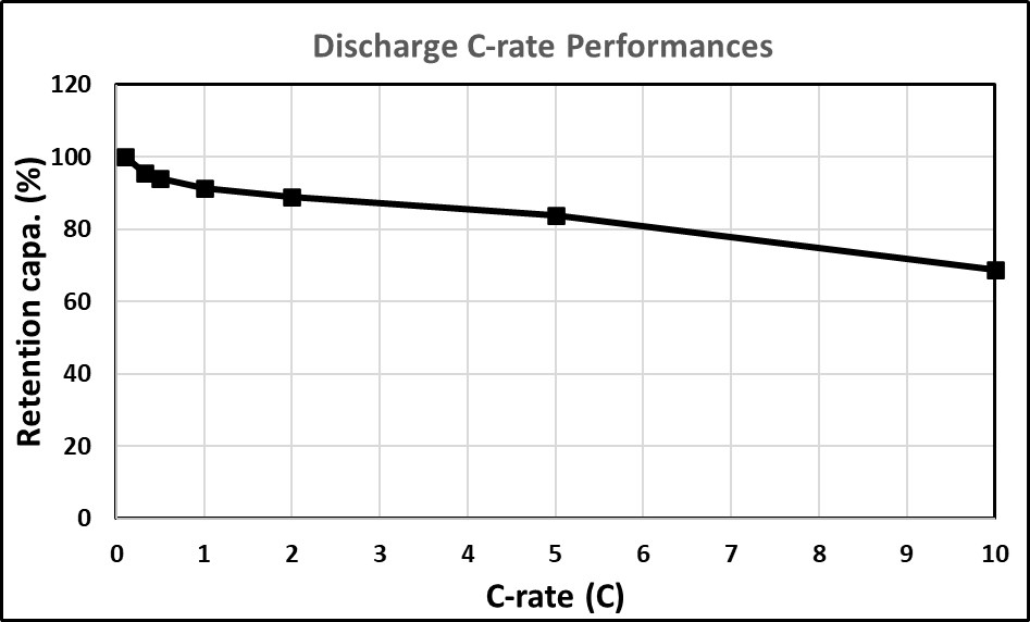 Figure 2: Capacity retention at a 10C discharge rate for li-metal cell.