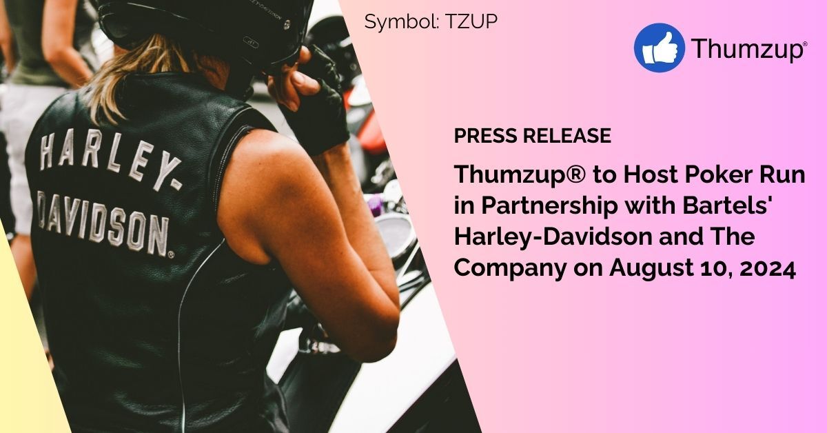 Thumzup® to Host Poker Run in Partnership with Bartels' Harley-Davidson and The Company on August 10, 2024