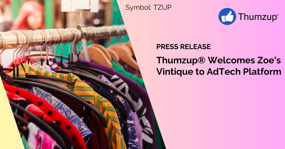 - Partnership with Zoe's Vintique expands Thumzup's advertising network