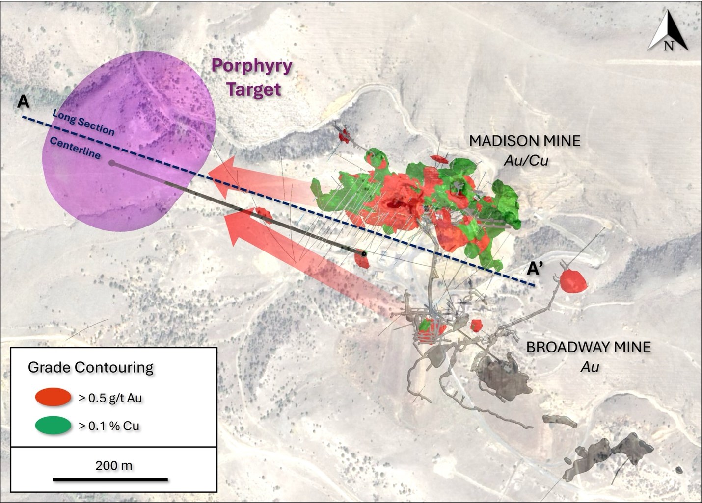 "As our geologic team has continued to generate, compile, and model data, the source of Madison's high-grade skarns and veins is becoming much clearer," commented Managing Director of Exploration, Eric Saderholm. "This is truly an exciting time for American Pacific given that, less than two years ago when we started evaluating new and historic datasets, concepts like these targets were not yet defined or well understood. At that time, we understood Madison to be a high-grade copper-gold porphyry expression, the origins of which we could only speculate. Today, we have a much more precise understanding of the source of those high-grade zones and Phase II drilling will focus on these newly identified targets as we work to demonstrate Madison's full potential."